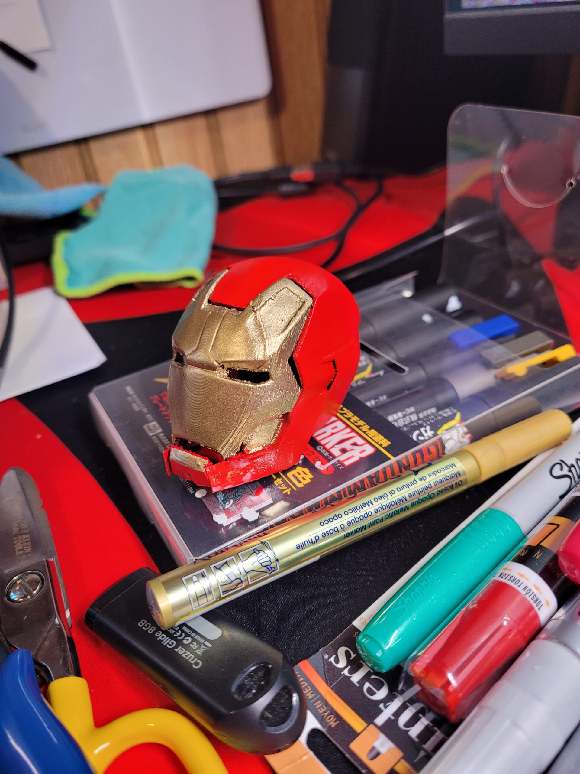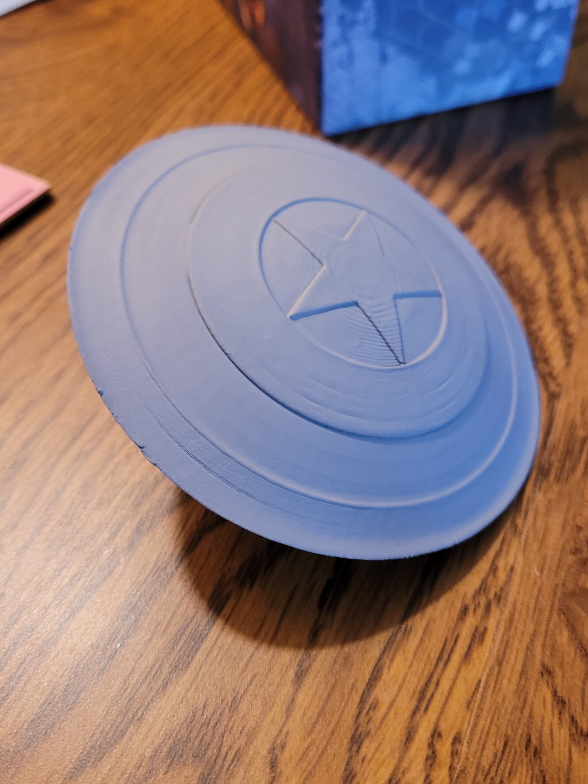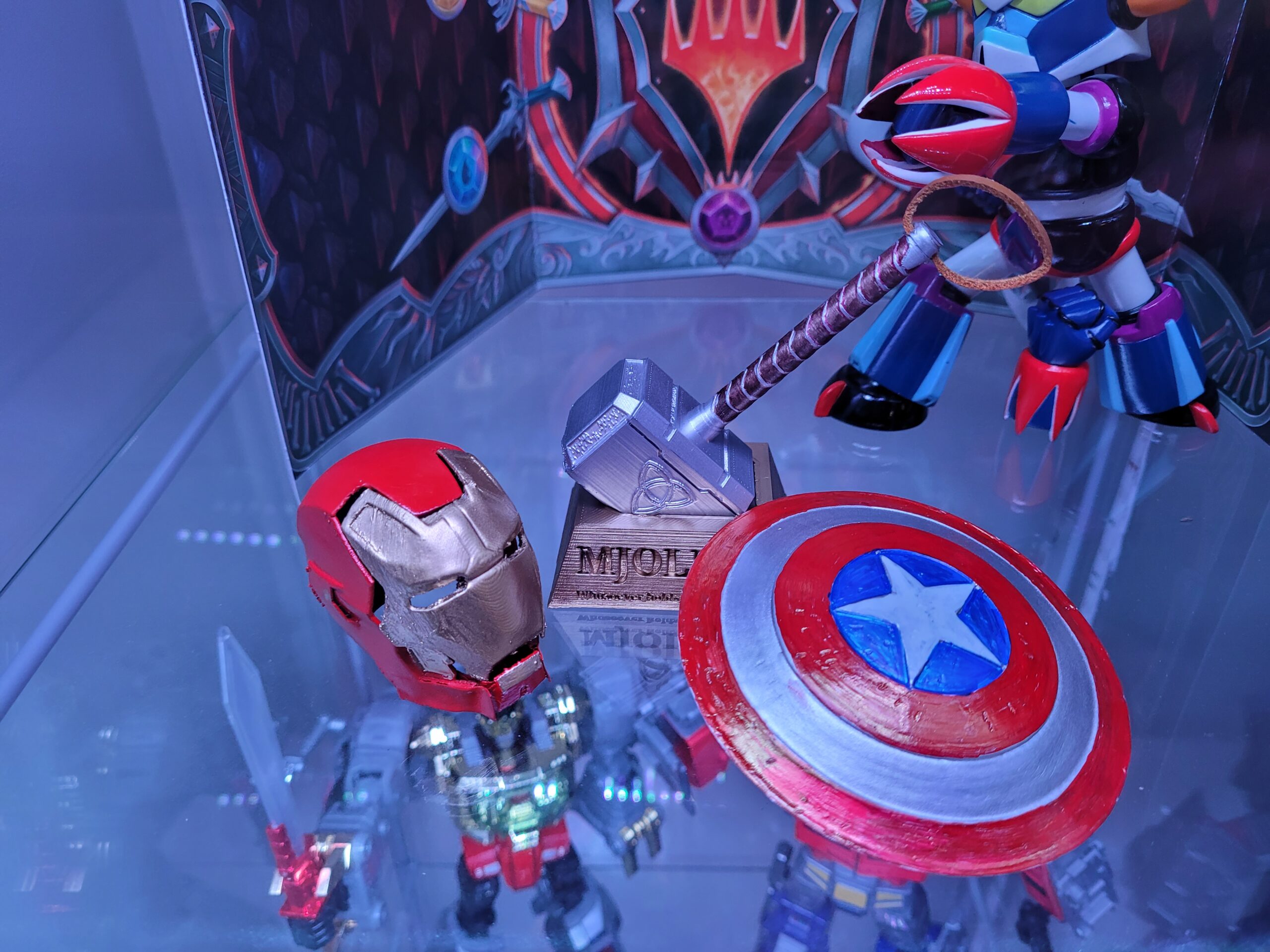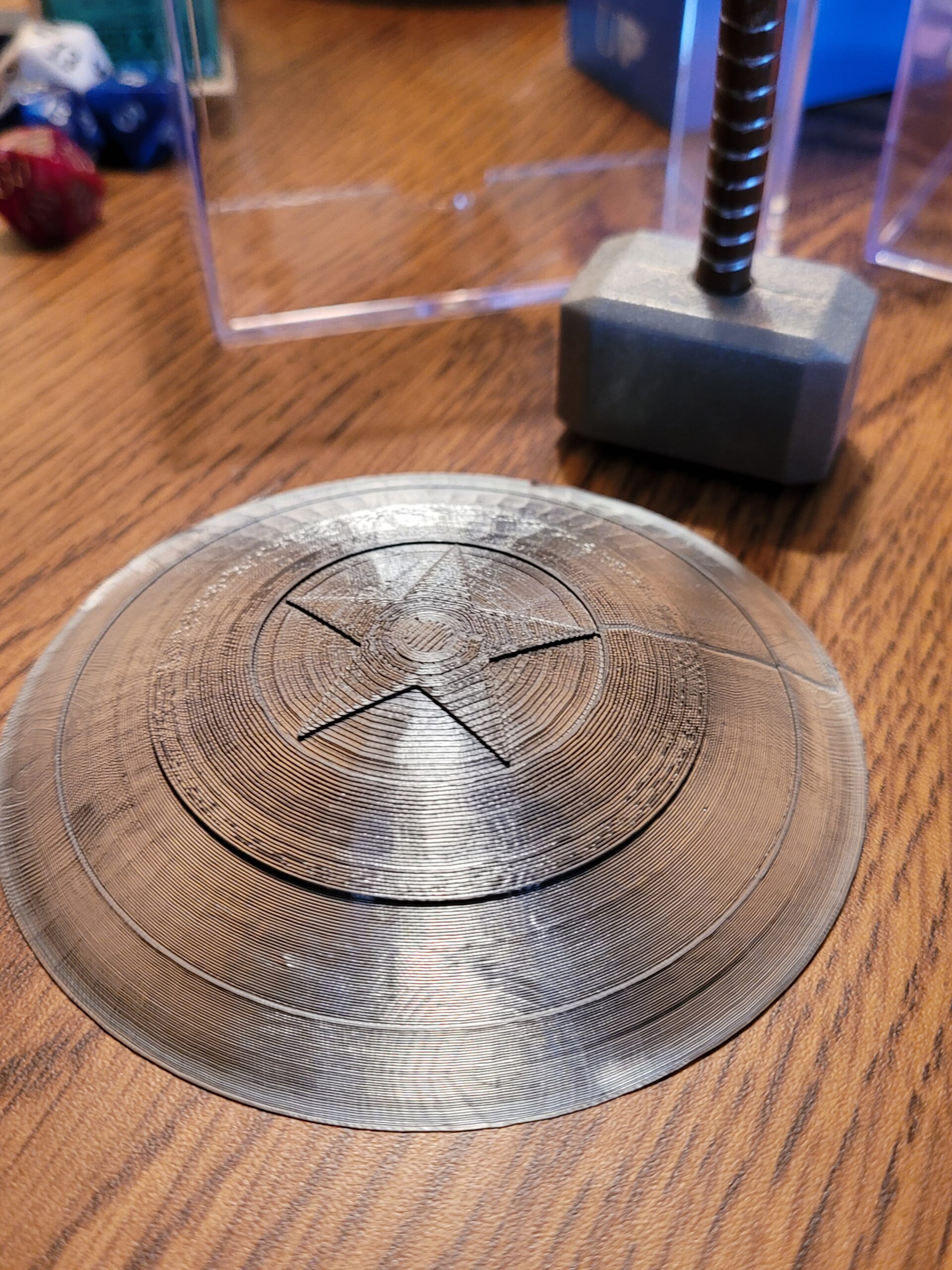 Then I moved onto some of the gear from The Avengers. I started with Mjolnir (Thor’s Hammer) because I thought that was pretty cool. Captain America’s shield was a challenge to print, but turned out pretty flexible. I could even throw it around. Iron Man’s helmet was almost a total nightmare.