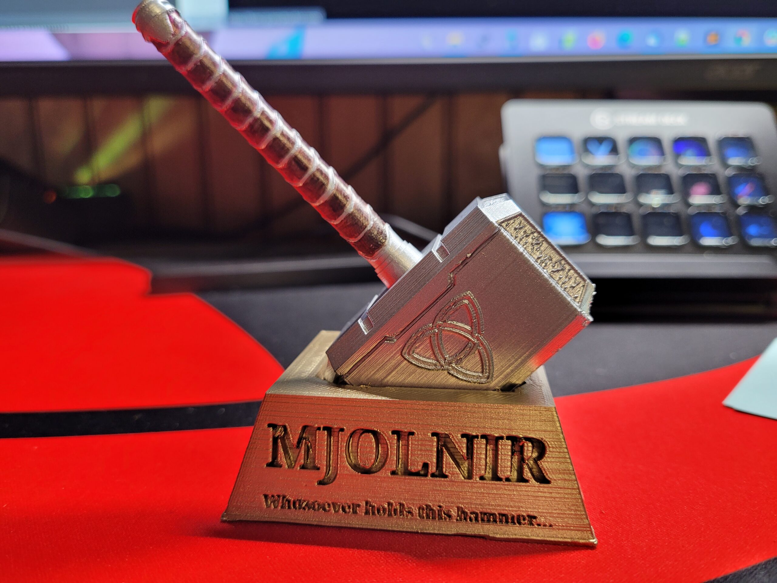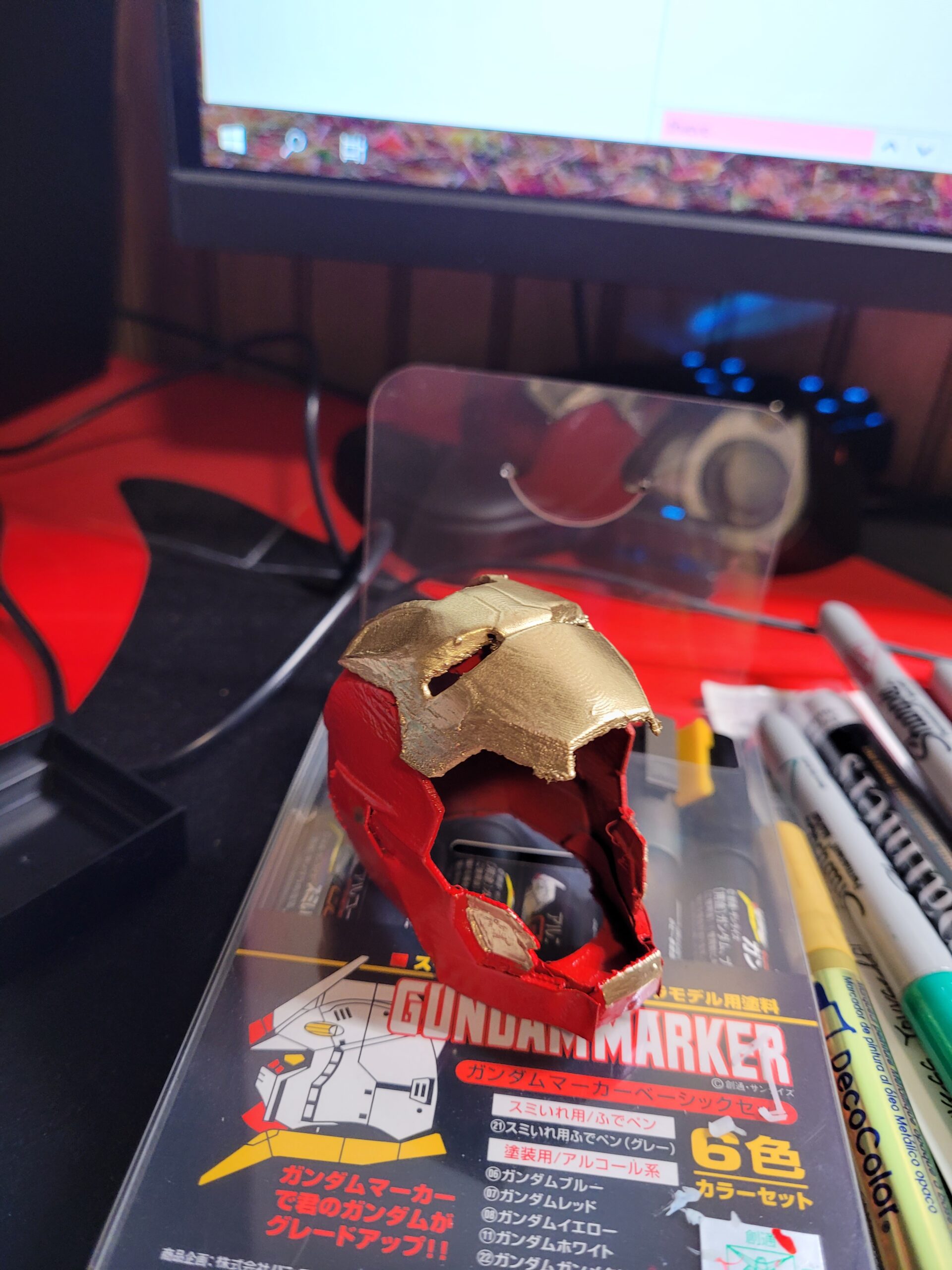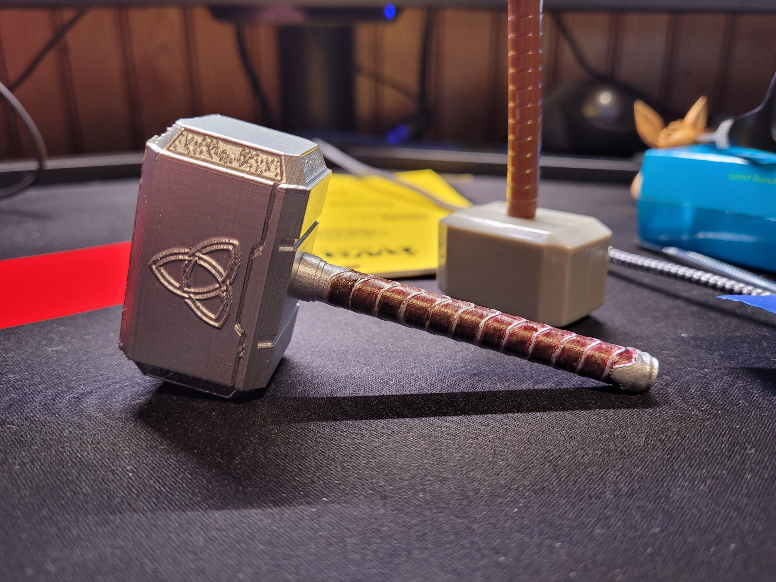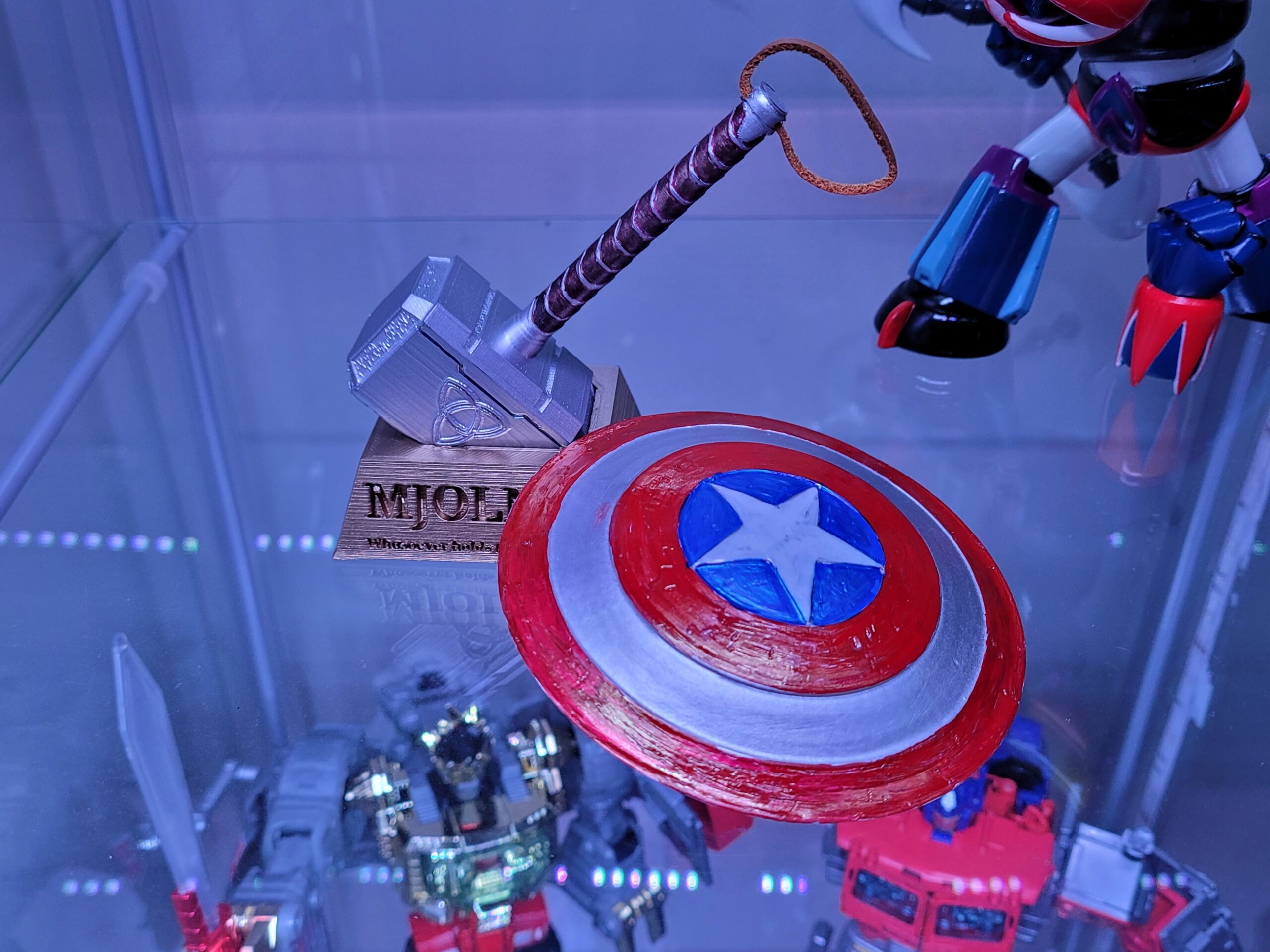 Then I moved onto some of the gear from The Avengers. I started with Mjolnir (Thor’s Hammer) because I thought that was pretty cool. Captain America’s shield was a challenge to print, but turned out pretty flexible. I could even throw it around. Iron Man’s helmet was almost a total nightmare.